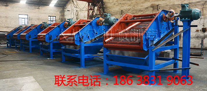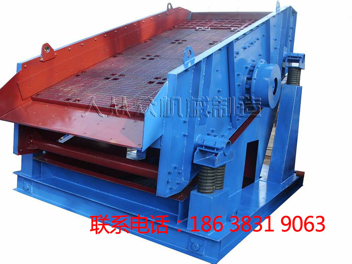 鐵礦粉直線篩(直線振動篩)工作時在兩個振動電機(jī)的帶動下產(chǎn)生激振力,迫使篩面上的鐵礦粉跟隨垂直于兩電機(jī)的軸上做直線的跳躍運(yùn)動,根據(jù)透篩率的理論,有很大比例小于篩孔的礦石粉透過篩孔進(jìn)到下一個篩分階段或者作為篩下物料被運(yùn)輸出來。