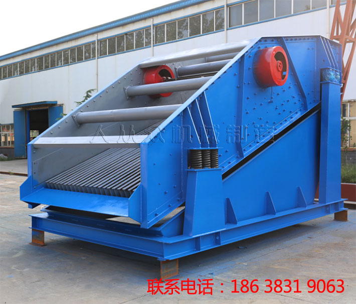棒條振動篩主要由振動機架、彈簧、振動器、電機振動架及電機等組成。激振器個是由二特定位置的偏心軸以齒輪相嚙合組成,裝配時必須使兩齒輪按標(biāo)記相嚙合,通過電機驅(qū)動,使兩偏心軸旋轉(zhuǎn),從而產(chǎn)生巨大合成的直線激振力,使機體在支承彈簧上作強制振動,物料則以此振動為動力,在料槽上作滑動及拋擲運動,當(dāng)物料通過槽體上的篩條時,較小的料可通過篩條間隙而落下,可不經(jīng)過下道的破碎工序,起了篩分的效果,提高了工作效率。