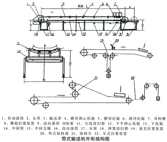 2、滾動部分:分傳動滾筒和改向滾筒兩大類。