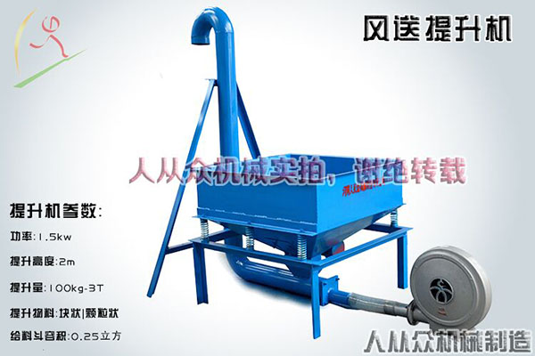風(fēng)力提升機(jī)由鼓風(fēng)機(jī)、料斗、振動電機(jī)、輸送管道和其他裝置組成。電機(jī)作用于料斗,可以使物料勻速的下落,預(yù)防起拱和堵塞的現(xiàn)象。使用時先插電啟動振動電機(jī)和鼓風(fēng)機(jī),運轉(zhuǎn)穩(wěn)定后向料斗內(nèi)倒入物料,經(jīng)過電機(jī)的振動,物料下落至運輸管道,遇到鼓風(fēng)機(jī)吹來的強(qiáng)風(fēng),被吹至管道頂部隨著出料口均勻的以螺旋形式輸出,一氣呵成。
