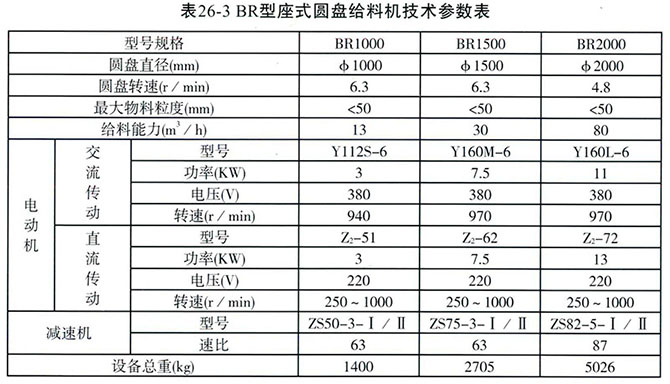 BR圓盤(pán)給料機(jī)型號(hào)技術(shù)參數(shù):