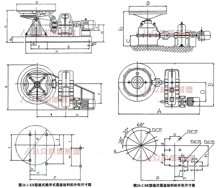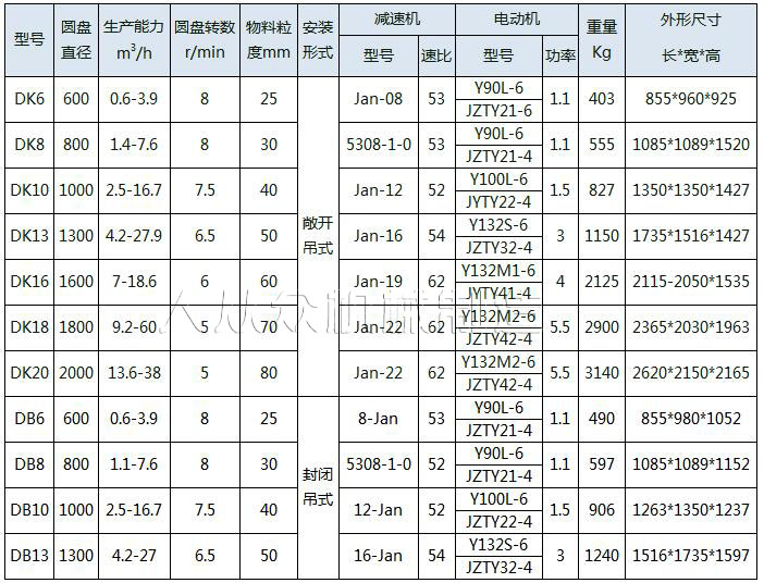 圓盤給料機型號包括DK圓盤給料機(敞開吊式)、DB圓盤給料機(封閉吊式)、KR圓盤給料機(敞開座式)、BR圓盤給料機(封閉座式)。