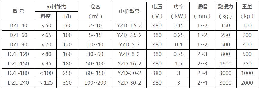 DZL振動料斗給料機型號主要有:DZL-40、DZL-60、DZL-90、DZL-120、DZL-150、DZL-180、DZL-240等。